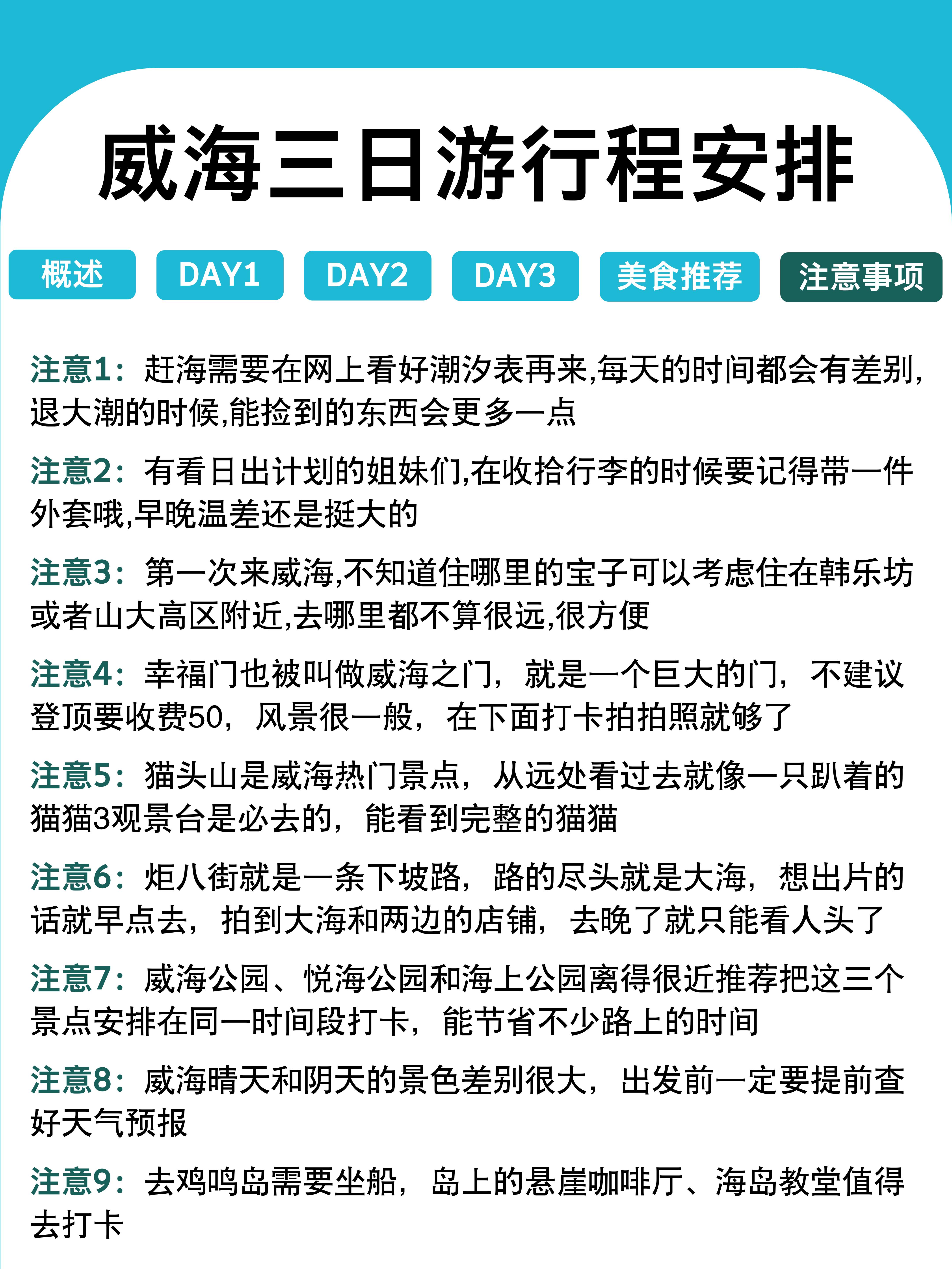 冬天马上就要到了,大家想去威海旅游的,可以开始做攻略了!真的很详细!能少踩很多坑,希望大家在威海能玩的开心~