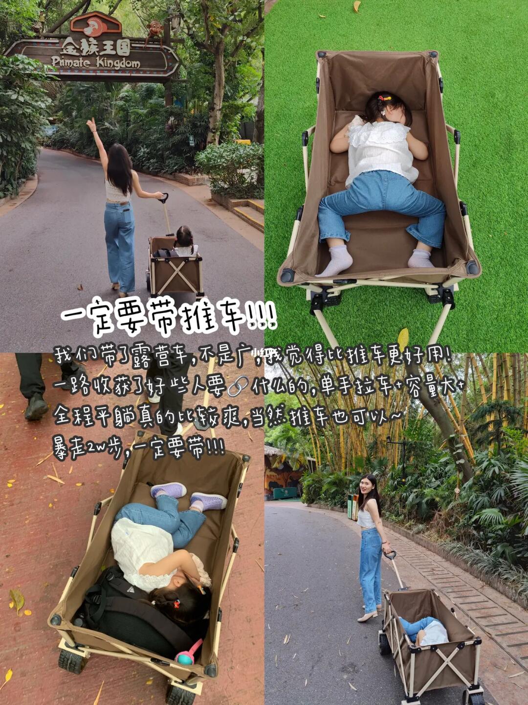 ⚠️一定要带推车!暴走2w步得玩8-9小时,不带推车很累的,尤其是负重30斤的崽,园区也有租100/天,我们没租,提前买了露营车,感觉比推车更好用,单手拉车+孩子能躺睡+容量巨大,在长隆2天都用啦,推荐!