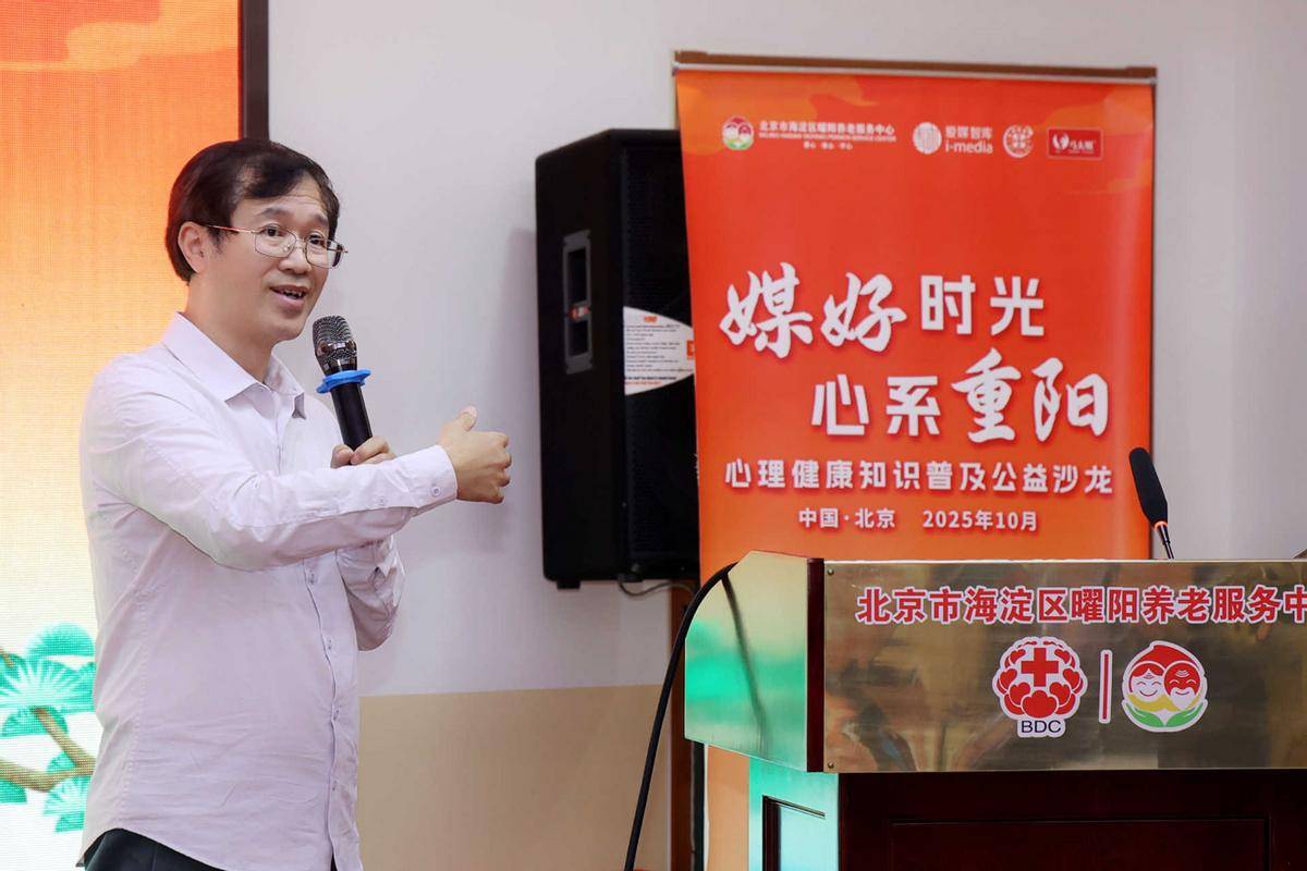 爱媒传智融新韵,曜阳承暖续心流。2025年重阳佳节之际,为积极响应国家精神卫生工作部署,切实关注老年群体心理健康需求,爱媒智库与北京市海淀区曜阳养老服务中心联合主办的“‘媒’好时光,心系重阳——心理健康知识普及公益沙龙”暖心举办。活动旨在以专业力量传递暖心关怀,让传统重阳文化与现代精神健康服务深度融合,为老年群体送上贴合生活的心理关怀与知识支持。