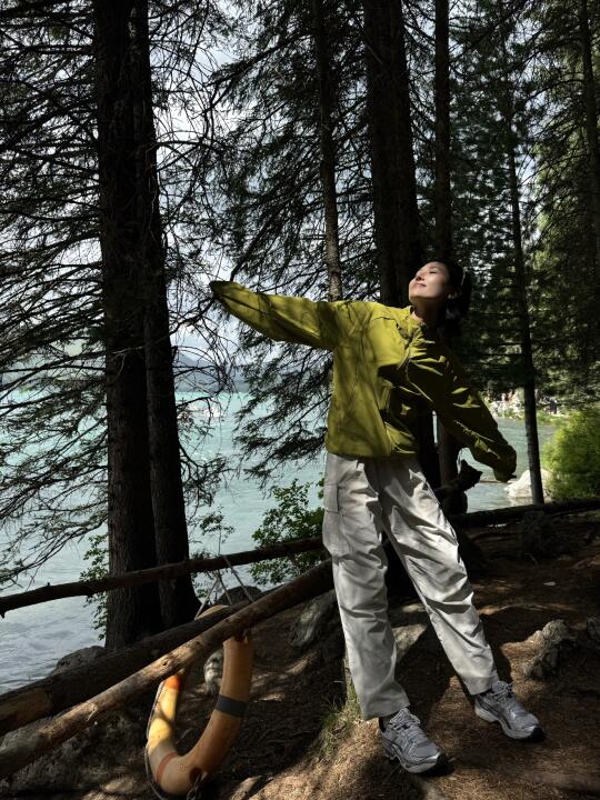 太阳有点晒,湖边有点凉