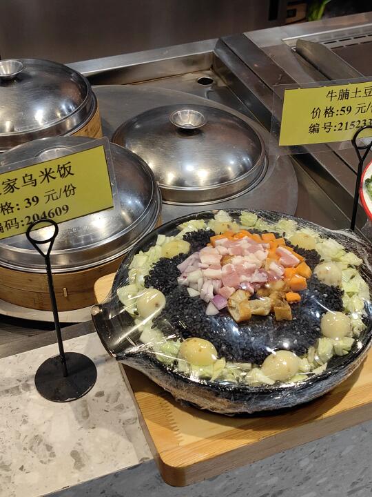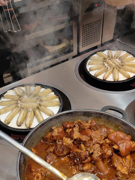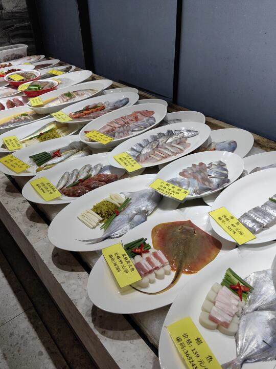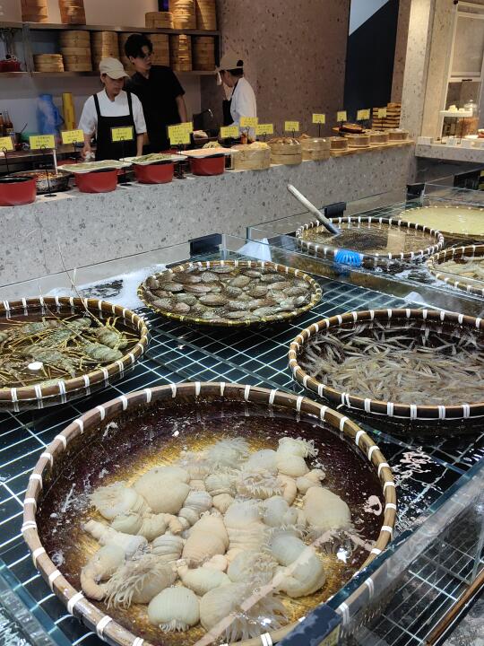 宁波20多年的老品牌也是跟上潮流了,店里的环境高级好多,明档点菜区干净清爽,价格标签非常清楚,现烤的蛏子和芋艿在诱人…