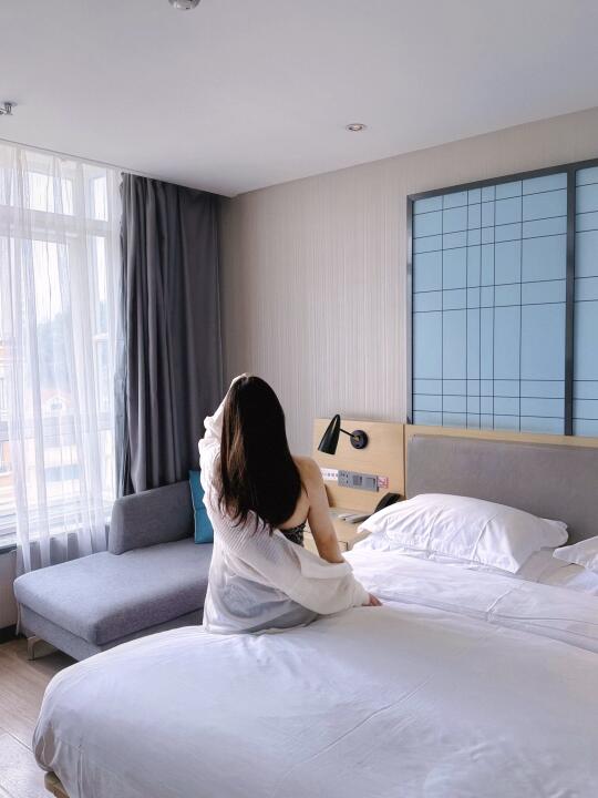 房间舒适:宽敞明亮,设施齐全,床铺舒适,卫生间干湿分离,环境干净整洁。住的舒服又好看出差旅游都省心。北欧风设计干净舒服不压抑,尤其那张床,睡一觉疲惫全消。自带大停车场,对自驾友好。