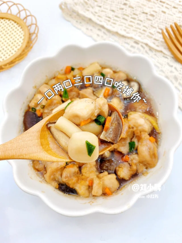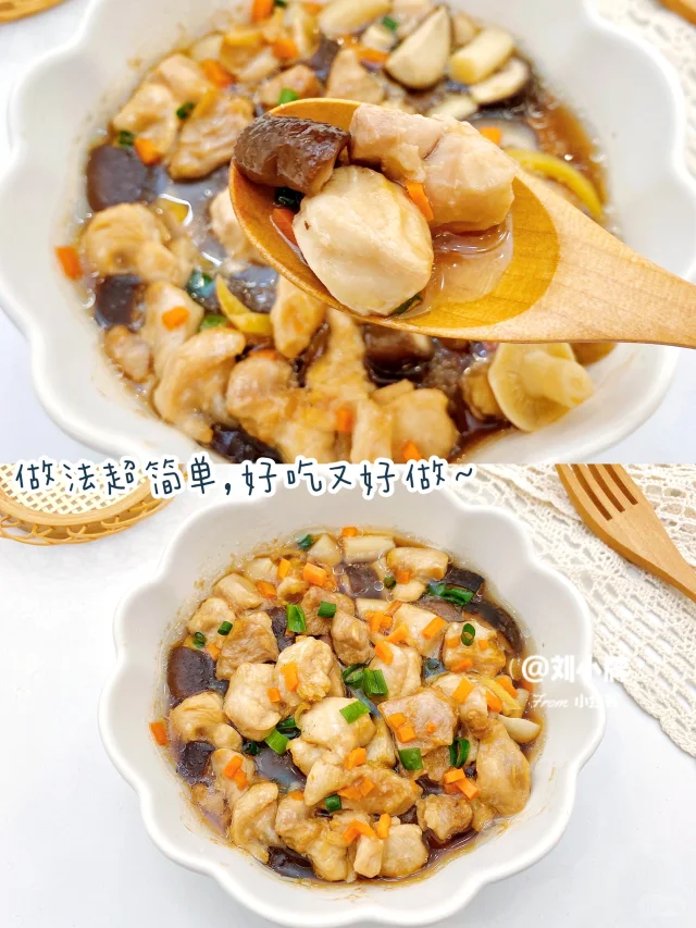 鸡肉鲜嫩多汁,蘑菇口感滑嫩