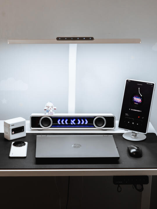 🌟开箱第一眼:深渊镜面太有氛围了!直接被种草了!通电后光影像漩涡一样层层递进,暗光下直接拉满电竞感。原本普通的白色书桌,瞬间从“简约风”变成“赛博小窝”