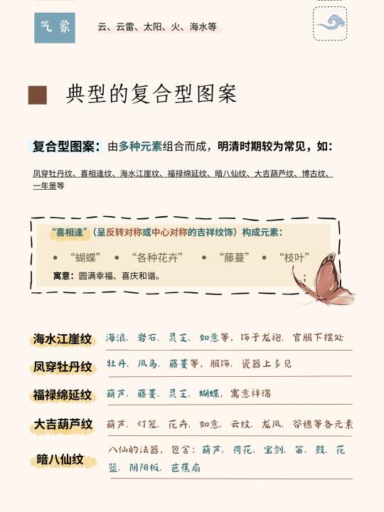 【明清】题材日渐丰富,图案日趋写实化、繁复化,人们重视图案的祥瑞之意。如:大吉葫芦纹、三多纹、耄耋纹等。