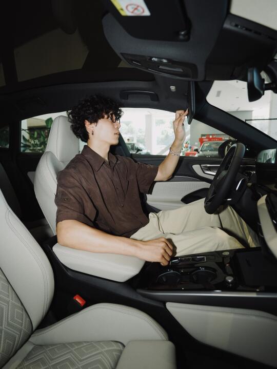 迫不及待坐进去体验了一下,根据人体工程学设计的座椅搭配上超纤皮与翻皮毛奢华面料,兼顾舒适的同时,豪华感也没落下。头顶的9分区智能全景天幕设计更是nice,调光、防晒随心切换,都能想象到自己开起来多么享受了!