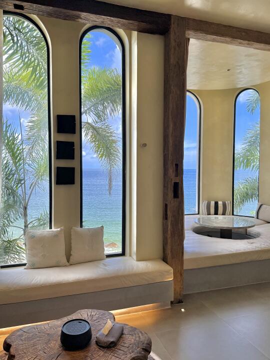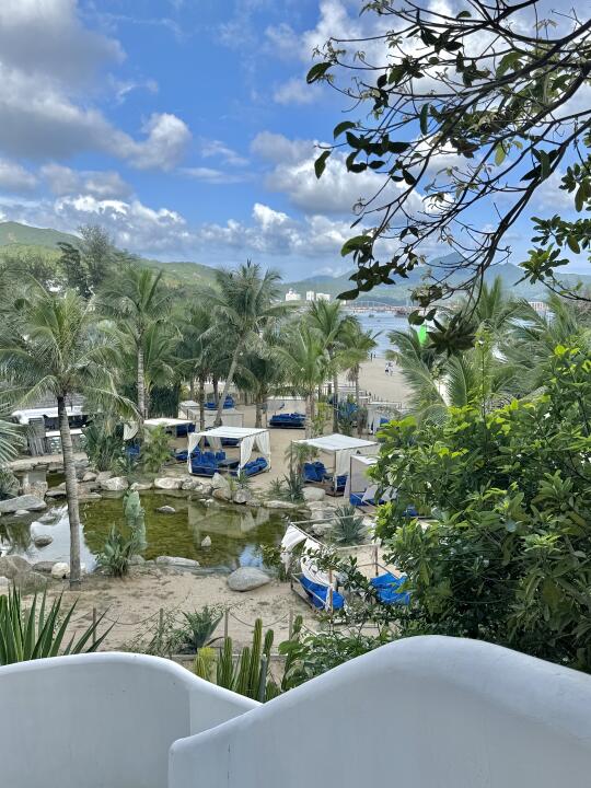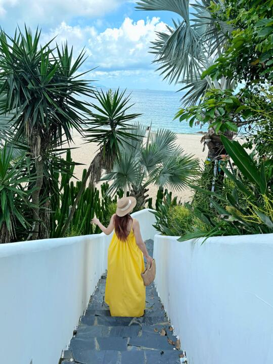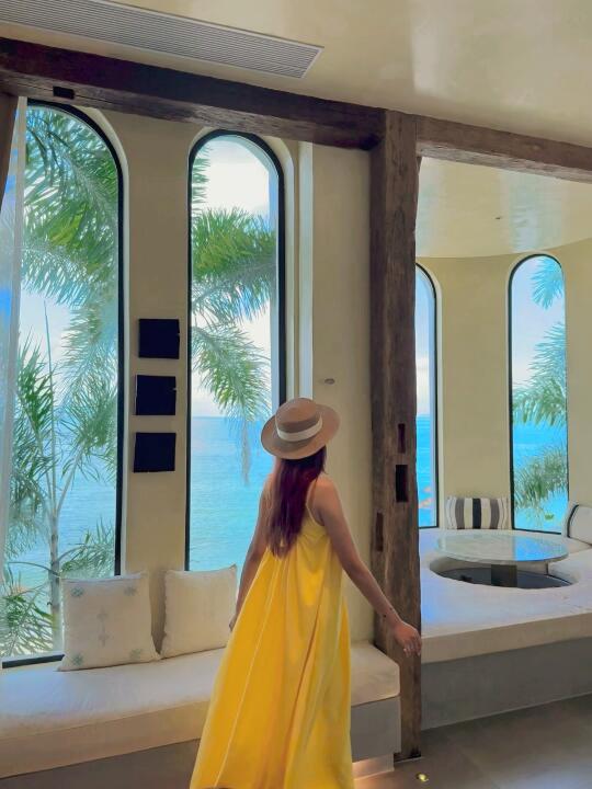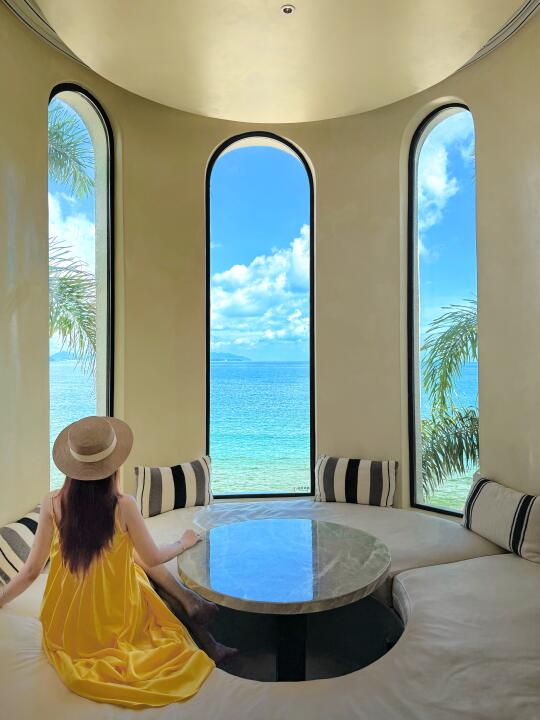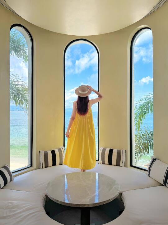 白墙吻着流云,蓝顶浸在波光里,每扇窗都是自然的画框,晨醒便与碧海撞个满怀,睁眼就是波光粼粼,随手拍都是ins大片。