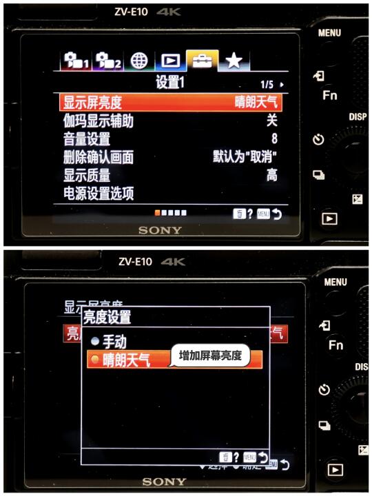 这样就能看清楚屏幕了!注:虽然开启晴朗天气会让Zve10屏幕略微偏色,但是比起啥都看不清,还是默默接受了吧!