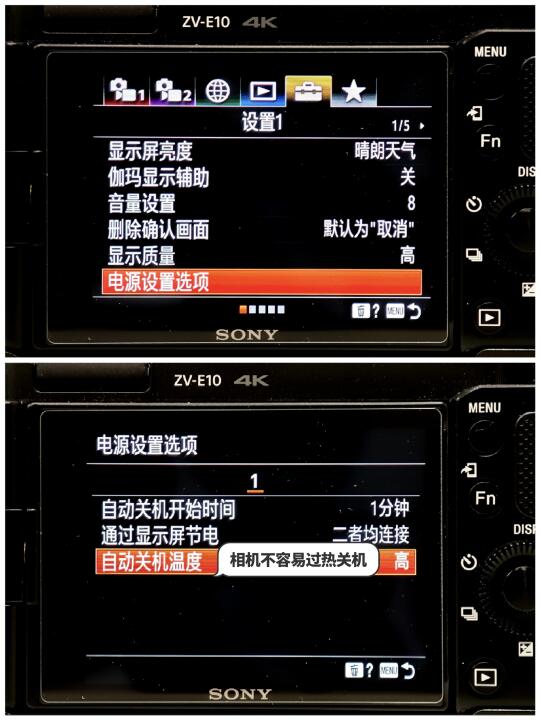 5️⃣ 天气逐渐变热,不知道大家有没有碰到温度过高导致无法拍照,拍视频的情况!如果🈶,那是因为你没有给相机的『电源设置选项』做好设置❗️其实只需要把相机『自动关机温度』设置成【高】,就可以解决这个问题了!注:当然如果是高强度视频工作者,还是建议上散热器
