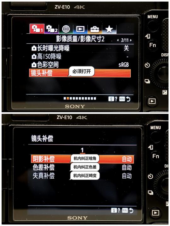2️⃣ 大家有没有碰到过,换了镜头后照片拍出来暗角严重,畸变很严重的情况❓以为是镜头出问题了,其实真正的原因是你没有打开相机『镜头补偿』功能,我的建议是三个选项都要打开→如图3️⃣