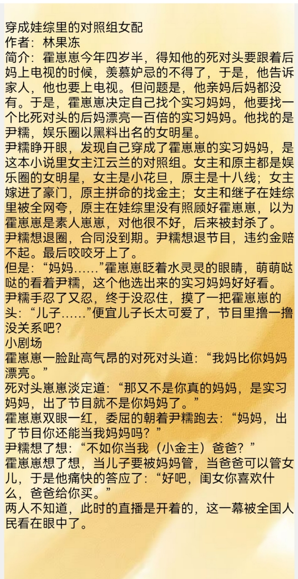 《穿成娃综里的对照组女配》作者:林果冻文章字数:390095字(完结)