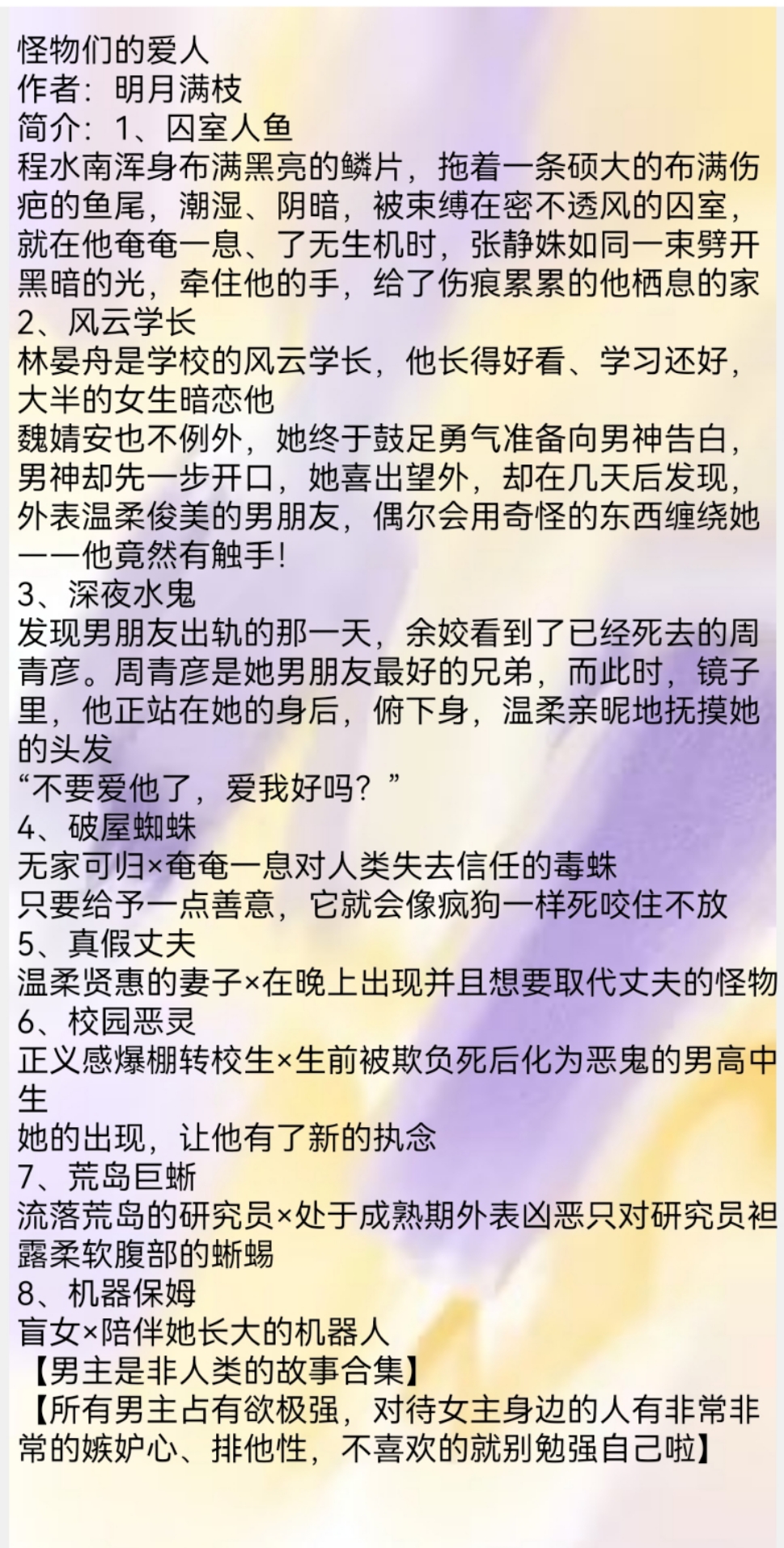 《怪物们的爱人》作者:明月满枝文章字数:1121404字(完结)