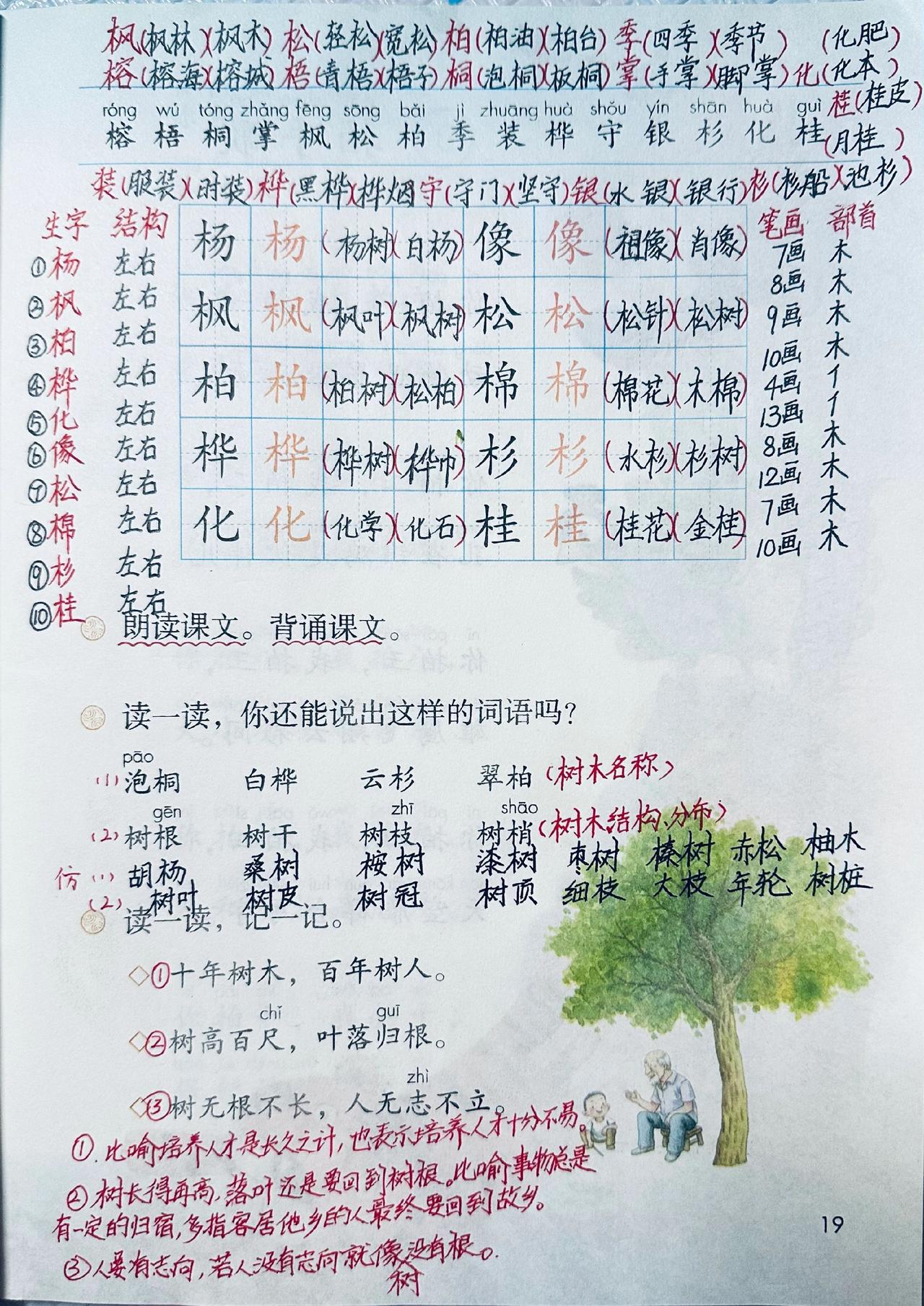 新版二上语文识字第2课《树之歌》预习笔记