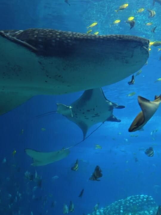🐳蜡笔小新同款鲸鲨馆全景:巨大的鲸鲨从头顶游过,画面超震撼
