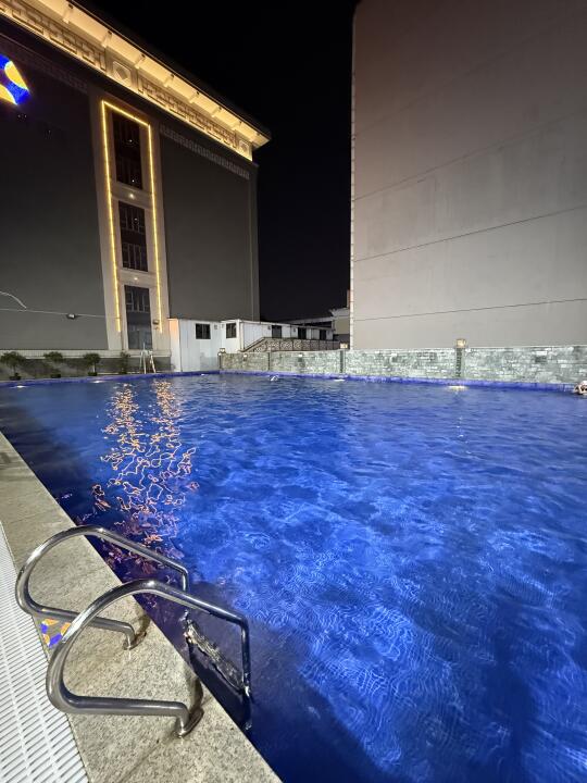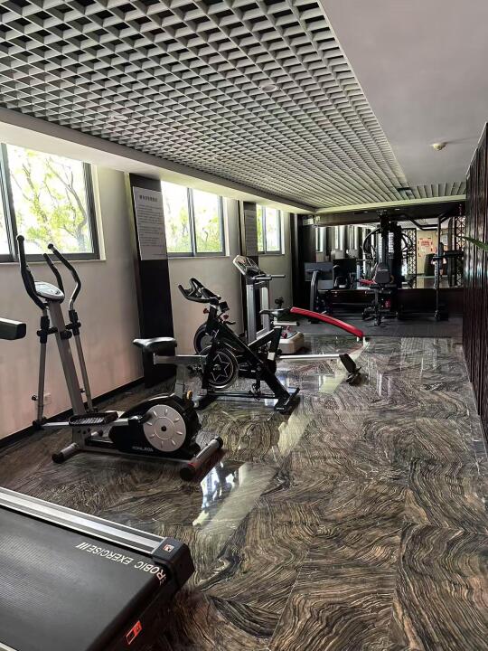 晚上酒店泳池会亮灯💙 水波晃着光影,游完回房间路上听虫鸣,这才是度假该有的松弛感啊… (偷偷说:健身房也能随时撸铁,卷or躺自己选🏋️)