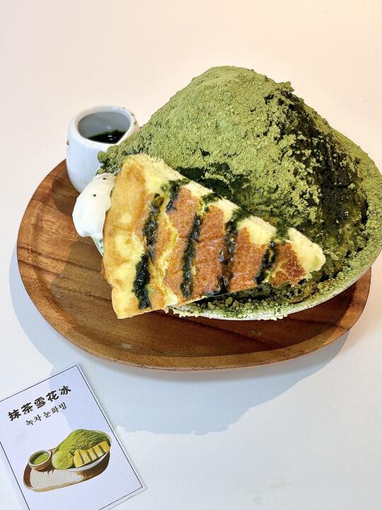 抹茶雪花冰上面还有一块巴斯克~吼吼吃