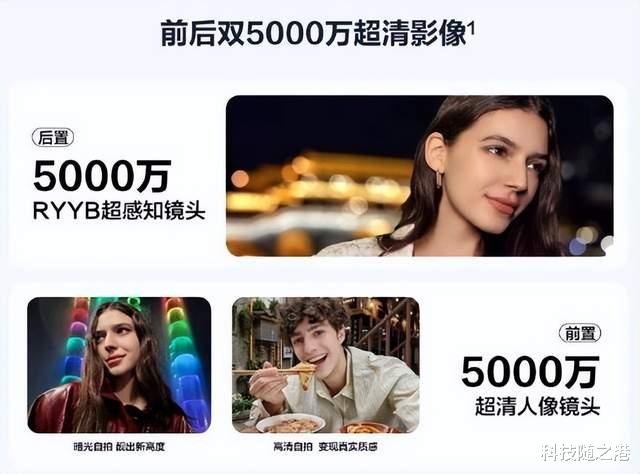 前置摄像头升级为5000万像素超广角镜头,无论是个人自拍还是多人合影,都能提供全时段的超清自拍体验。后置主摄则采用了5000万像素RYYB感光阵列,配合QPD全像素对焦技术,显著提升了进光量。在复杂光线或夜景环境下,该系统能更好地保留人物面部的光线层次,有效还原环境光细节,确保用户随时随地都能完成稳定、高清且画质明亮的影像输出。