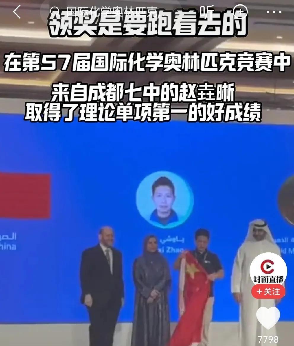 这一幕太感人了:成都七中学子赵垚晰斩获化学奥林匹克金牌,拿着国旗跑上领奖台… 7