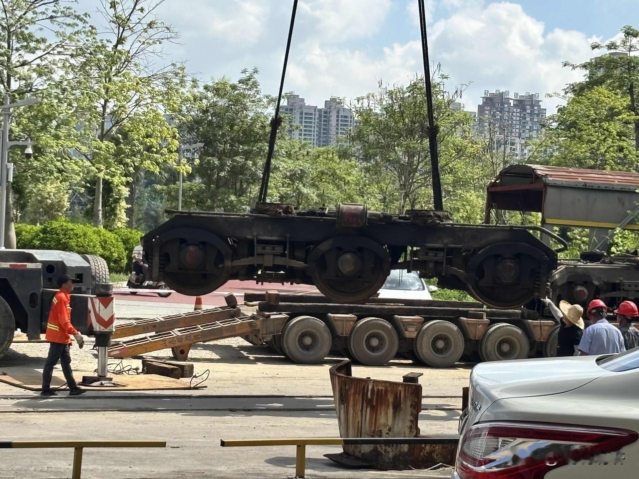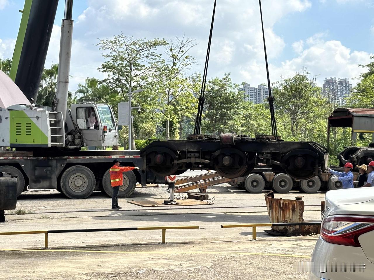 果然,事情不能只看一半,南铁记忆文化街的小火车运走了,却又运来了真家伙,目前在吊的是火车的底盘部分,这一看就是真家伙,我猜后面还会把车厢运来组装。不懂这是准备搞什么项目?南铁文化街 南铁文化街 南铁记忆 南铁客运 火车厢