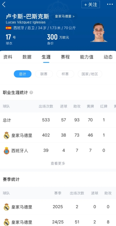 皇马官方:34岁巴斯克斯自由身离队,7月17日举办告别仪式。