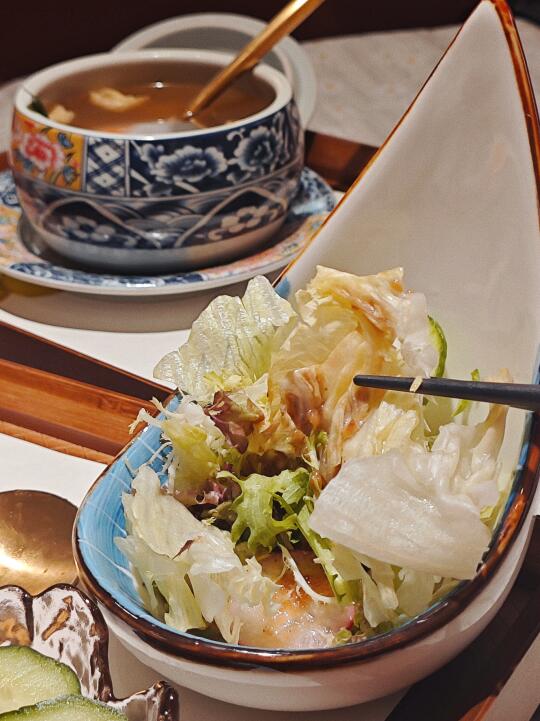 沙拉的油醋汁是点睛之笔,酸甜清爽;腌黄瓜脆生生的,吃完烧肉来一口,解腻又开胃,下午搬砖都觉得有劲儿了~