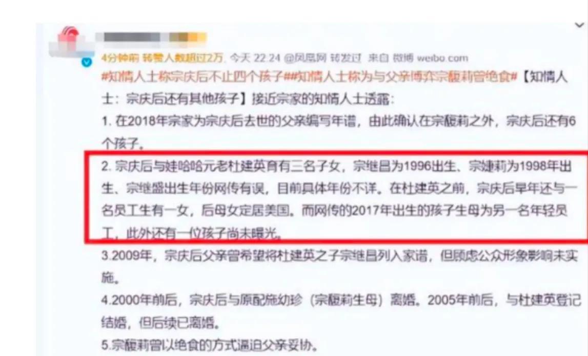 宗庆后到底有几个孩子呀?评论区都炸锅icon了!有网友又爆出猛料,说是七个!现在