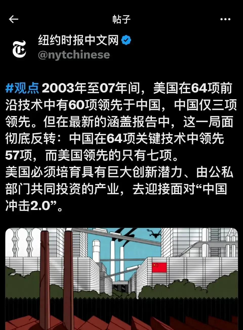 “中国在64项关键技术中领先57项,而美国领先的只有7项”! 这话,如果无论出自我们国家哪位专家学者之口,都会被公知精美们喷得体无完肤! 然而,这话却是纽约时报说的。 这让公知们纵然满心不服不开心,也得忍着。