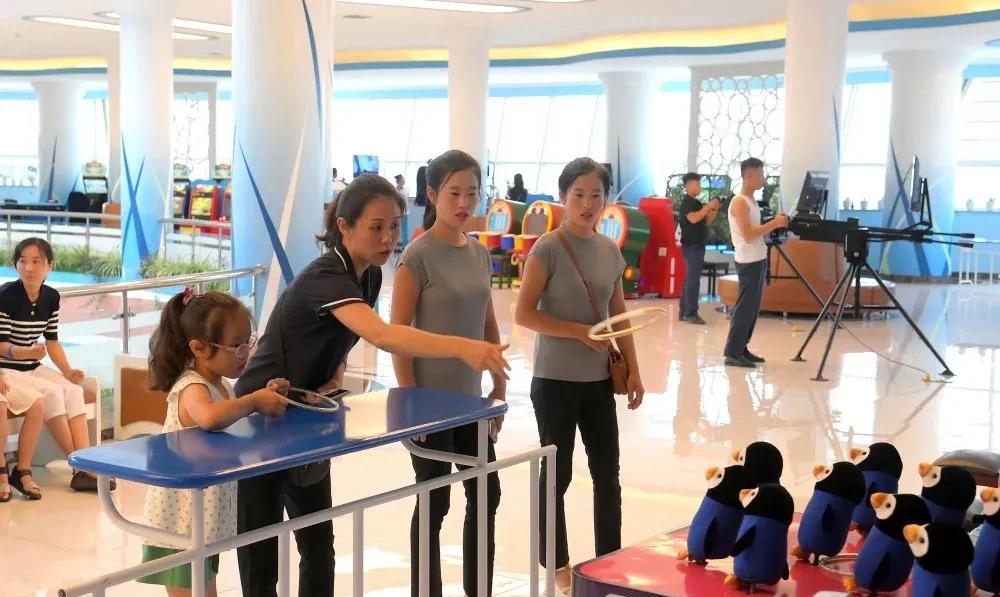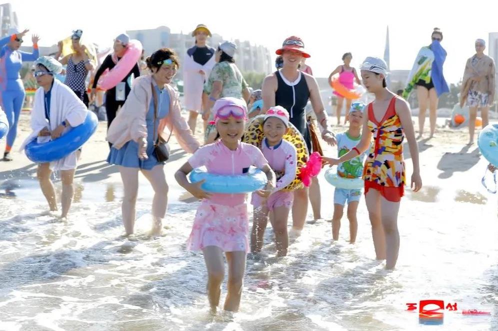 KCNA说:“元山葛麻海岸旅游区游客爆棚,旅游热潮日趋升温,海滨浴场、沙滩排球场、露天戏水场、电子娱乐馆等旅游景区各处人山人海,吸引游客前来享受迷人的海岸旅游文化。”