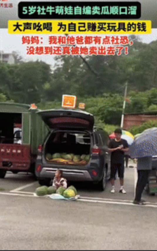 “太有头脑了!”贵州,一对夫妻卖西瓜,但是脸皮薄,不敢吆喝!本以为一个都卖不出去,结果,5岁女儿自告奋勇,说为自己赚买玩具的钱,并自编卖瓜顺口溜,然后大声吆喝,这一招效果出奇的好,西瓜很快就卖完了!妈妈:我和他爸都社恐,没想到真被她卖出去了!