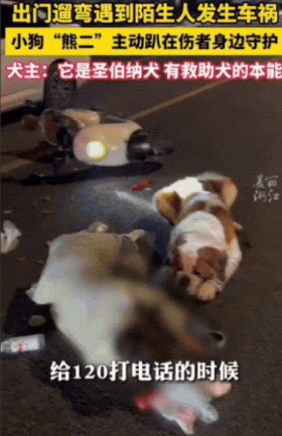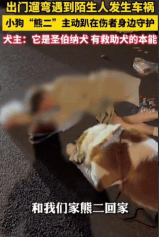 “太有灵性了!”黑龙江,男子出门遛狗,遇到2个女生发生车祸,趴地上动弹不得,他急忙打120,没想到,小狗“熊二”为了不让其他车压到女生,竟然主动趴在女生身边守护,男子坦言:“熊二”是圣伯纳犬,有救助犬的本能!