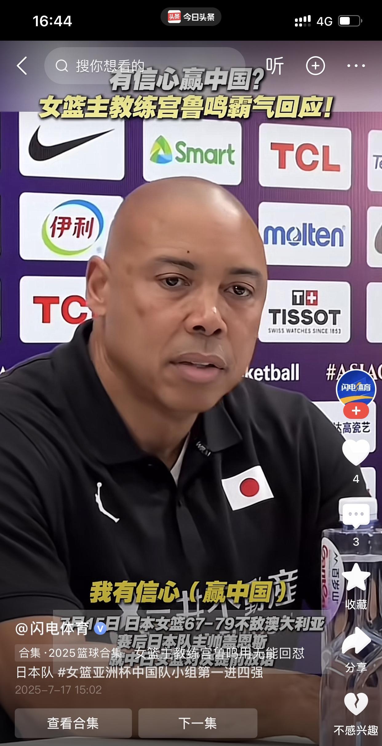 宫鲁鸣说:“不要像下半场那样无能!” 这是中国女篮主教练昨晚赛后面对记者采访时所言 “如果半决赛打中国队,球队会拿出打澳大利亚队上半场的表现去赢得胜利!” 因此,中国女篮主教练宫鲁鸣昨晚直接回应了日本女篮主教练盖恩斯所言 在参与大赛时,不同球队肯定有不同打法,同样不同主教练有不同的说法,或是鼓励自己球队,或是对外虚张声势 但是,最重要的还是看自身实力! 综合上述,咱们中国女篮信心十足,不在乎对方玩什么花样,只要我们自己实力强大,任尔东西南北风!