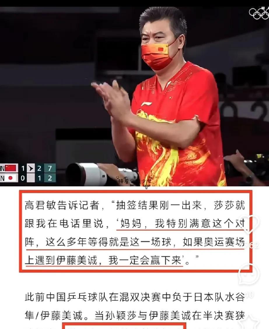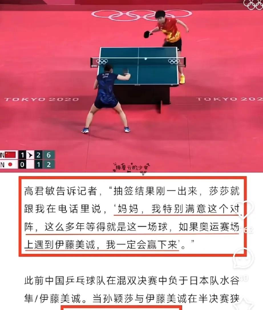 原来莎莎被罚跑一万米是真的。 主持人问李隼:“现在队里最刺头儿的是谁?” 李隼说都很刺儿,只不过每个人表现形式不一样,说到莎莎时他一脸的骄傲,他说别看莎莎每天笑呵呵都非常可爱,大家人见人爱,其实是最难对付的一个,当时因为莎莎不听话,李爷爷说他就罚莎莎跑一万米。莎莎没有教练的那几年,是李爷爷一直在带她。 后来谈到东京奥运会周期,李爷爷说封训期间就让莎莎专门打伊藤,为了备战伊藤,就为一个球,莎莎每天要打成功100个,那她得打上多少个,如果达不了100个成功,必须要到那个线上,就是伊藤抬手够不着的地方。看了李爷爷说的 有网友说:“每个人都有抬手够不着的地儿,懂的都懂。”她远比我们知道的还付出的更多,苦吃了,未来让她甜。 “为什么要等这场球呢,因为你一直在练。”看了当年的采访,莎莎对妈妈说的话,再一次心疼这个女孩子,她真的就是去挡伊藤的,当时伊藤也确实厉害,她说她一定会赢下来,也确实赢了,也就是说只要小女孩想赢,她就会去赢下。 东奥周期莎莎是备战伊藤,巴黎周期16次打早田希娜,备战混双,她完成了自己的任务,却没能完成自己的梦想,以后希望她只为梦想而战。