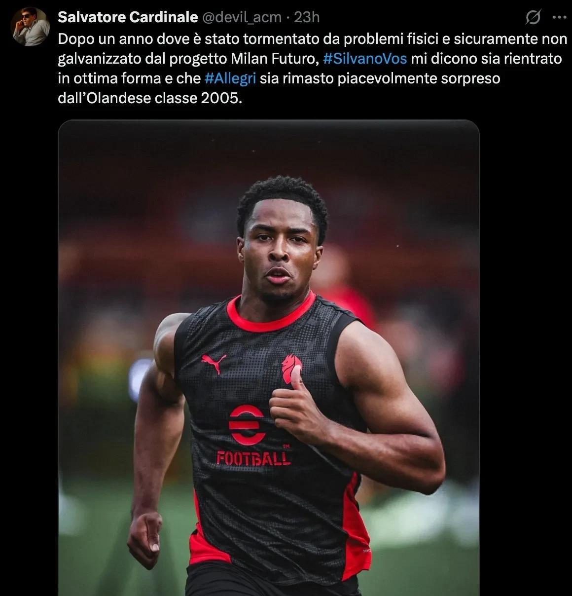 沃斯!阿莱格里终于说话了,阿莱格里说沃斯的表现给了我惊喜,我真的没想到他之前竟然没有在米兰未来队出场。沃斯在荷乙时是主力球员,他的防守能力还是靠谱的,在米兰未来队有多重原因,如果阿莱格里能认可他,能好好管理他,个人觉得他有可能替代穆萨。 这么多年了,给啥吃啥一直是阿莱格里最基本的职业素养,意大利教练都擅长看菜做饭,当然孔二愣子不行,阿莱格里来了后米兰全队都是核心球员,看着阿莱格里说话都不知道到底哪句才是真的,不过,阿莱格里之前一直都不评价沃斯,这次无论是不是画饼,至少算基本认可了,这是好事,这个孩子是后腰,米兰六号位防守还是薄弱,这个孩子防守可以的。 这小伙在荷乙踢得挺不错的,他在未来队有时候甚至替补都混不上,不能都怪博内拉,奥多上任后也没用他,这个孩子心气太高,他之前几场意丙表现非常出色就想上调一线队,但一直没机会,后来就划水了,所以这个孩子需要好好管理,哪怕有天赋,现在还没咋地呢,就这样,莫德里奇来了后好好修理,也许能成才。