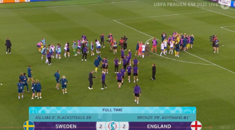 看到点球大战,直觉英格兰会赢。一方面,我看到的大赛里,英格兰点球质量很高,Hannah Hampton也是扑点球比较好的门将;另一方面,瑞典在2020(2021年)奥运会决赛、2023世界杯点球都罚的都不行。但真的没想到,这个点球大战质量差到离谱。我吃惊:英格兰点球质量怎么变成这样子了!2023年世界杯她们罚的多好啊,那时候她们罚出的五个点球,四个是基本上扑不出来的,尤其是Beth England、Rachel Daly和Chloe Kelly的三个上角点球属于“彻底不可扑”。另外欧美杯决赛她们的点球也相当好。这次Stanway不在场上、Daly国家队退役、England无法进国家队,点球手也几乎全换了。这个点球肯定需要加强了。