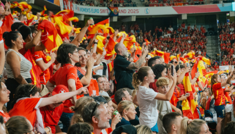 今晚我还遇到了很多来自世界各地的人,有人为瑞士加油,有人为西班牙呐喊,也有很多人只是单纯热爱女足,热爱她们喜欢的球员。还认识了一个来自爱尔兰的女孩,她是西班牙球迷。我们来自完全不同的地方,却因为女足在这个夜晚相遇、坐在了一起、一起欢呼。我忽然觉得,这个世界其实真的蛮美好的,至少在今晚,我们都是因为热爱聚在这里。