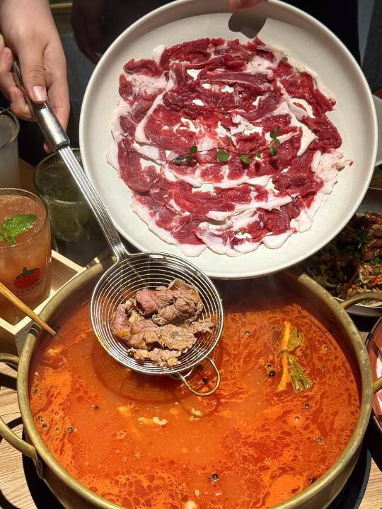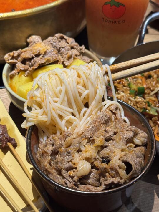 酸汤火锅真的是我的zui爱了❤️发现他们家开来北京 第一波冲过去尝尝!红酸汤底简直太开胃了🥺 牛肉也是肉眼可见的新鲜!蘸上秘制调料 简直太香了😋其他菜品也都吼吼吃 随便点都不会踩雷!!