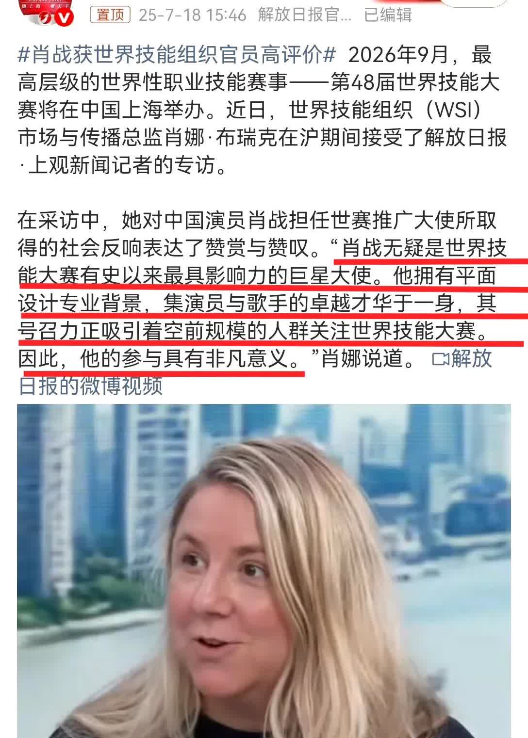 今天是个好日子[大笑][大笑][大笑]~ 🦐圈沸腾了~ 微博热搜爆了~ 肖战获世界技能组织官员高评价[赞] 改名字上世趋了~ 粉丝庆祝肖战新的开始,抽奖多多,奖品多多~