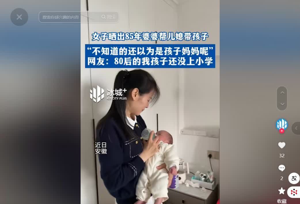 这奶奶看着真年轻!安徽,一女子抱着娃在喂奶,本以为她是孩子妈妈,可万万没想到,她竟然是孩子的奶奶,这个婆婆是85年的,正在帮儿媳带孩子,看着真的太年轻了,网友:80后真神奇,有的忙着生孩子,有的忙着带孙子。 在安徽,有个1985年出生的婆婆,因为长得太年轻,竟然在网上火了。她帮忙带孙子的时候,别人都以为她是孩子的妈妈呢。 张女士结婚后一直和婆婆住在一起,怀孕那会儿,婆婆对她好得不得了。一家子过得挺开心的,直到有一天出门买菜,遇到了不少尴尬事儿。婆婆抱着孩子走在前面,老有人过来跟婆婆说话,还一口一个“妈妈”地叫。刚开始,婆媳俩还笑着跟人家解释,后来也就不管了,爱咋叫咋叫吧。 在超市、商场,她们不止一次被人当成母女,还有人夸张女士:“你妈妈看起来太年轻了!”俩人听了总是笑得合不拢嘴。张女士心里也挺佩服婆婆的保养功夫,皮肤紧、身材好,穿衣打扮也时尚,哪里像个有三十多岁孙子的奶奶啊!她随手拍了张婆婆给孩子喂奶的照片,放到了网上,还写了句话:“这不是我妈,是我婆婆哦。”没想到,这条消息一下子就火了。网友们都在下面评论:“这奶奶也太年轻漂亮了吧!”“80后都已经当上奶奶啦?”“岁月对她可真温柔啊!” 就因为这么个小误会,让大家看到了这位85后婆婆的真实生活,她的年轻模样和活力满满的生活方式,让好多人都惊讶不已,改变了大家对“奶奶”的传统看法。