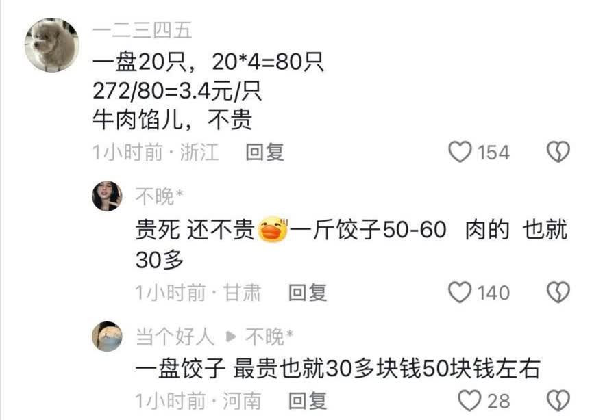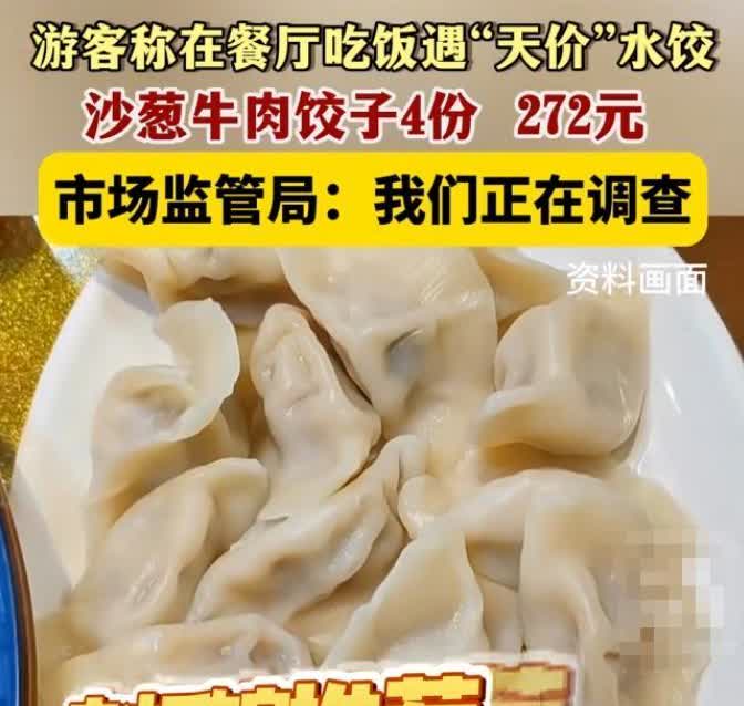 “天价水饺!”甘肃酒泉,女子和3名好友去旅游,老板娘为他们推荐了沙葱饺子,女子点了4份,结账时,她却傻眼了。4份沙葱饺子居然要272元,每份高达68元。女子说没想到一份沙葱水饺居然这么贵。 在甘肃酒泉的一家餐馆里,张艳艳和她的三个朋友一起出去玩时,听了老板娘的话,点了四份当地的特色“牛肉沙葱水饺”。等吃完准备结账时,她们傻眼了,四份饺子竟然要272元,一份就要68元! 张艳艳当时都愣住了,心想这饺子咋这么贵呢。她问老板为啥这么贵,老板告诉她:“沙葱一斤就要十七八元呢,我们都是明码标价的,没骗你。”可张艳艳还是觉得这也太夸张了,就算沙葱贵,成本也不可能这么高啊。她们几个都觉得这是店家看她们是游客,故意宰客。于是,她们把这事儿发到了网上,还向监管部门投诉了。 当地的市场监管部门很快就知道了这事儿,表示如果真的有价格欺诈,一定会严肃处理的。 这事儿越闹越大,网友们也是各有各的看法,有的支持张艳艳她们维权,有的则提醒游客以后吃东西前得问清楚价格。到现在为止,相关部门还在查这事儿呢。