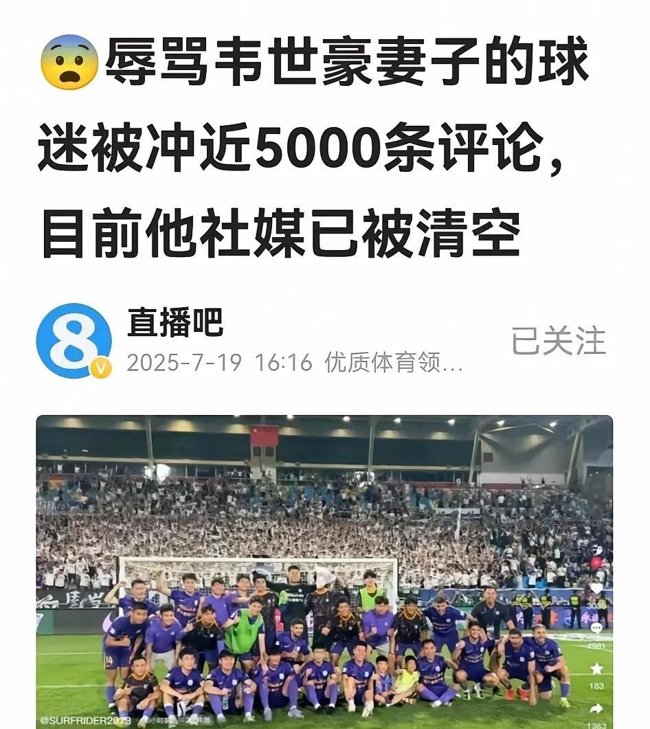 做贼心虚,用大喇叭骂韦世豪家人的黑衣人已清空社媒!说实话身为一个天津的球迷,这个