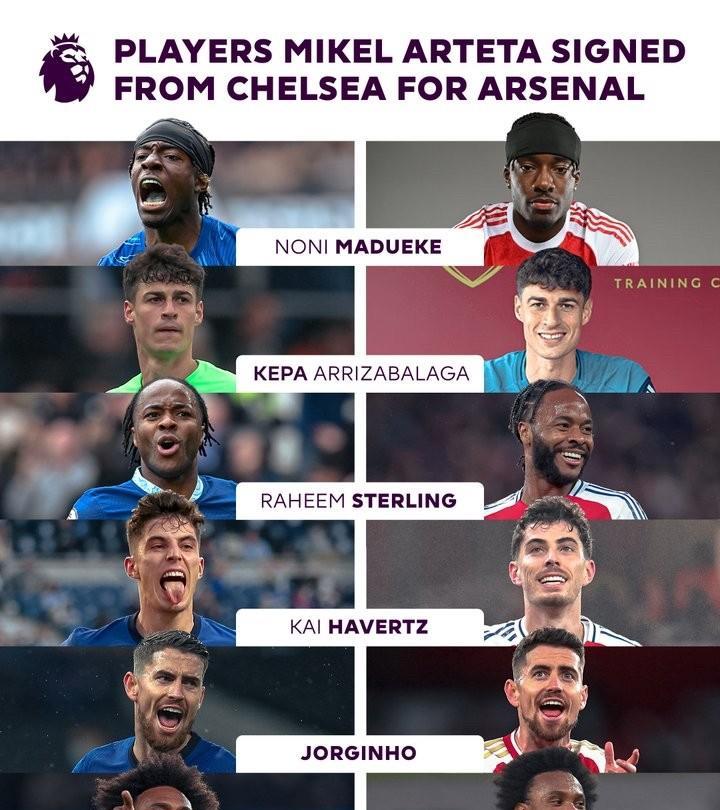 切尔西买布莱顿,而阿森纳买切尔西…… 切尔西与布莱顿之间的转会交易频繁,从布莱顿引入库库雷利亚、凯塞多、桑切斯和若昂佩德罗等,其中凯塞多的转会费高达1.33亿欧元,刷新了英超转会纪录。 阿森纳此前签下了切尔西边锋马杜埃凯,转会费总价为5200万英镑。此外,阿森纳还对蓝军引进了许多其他球员。