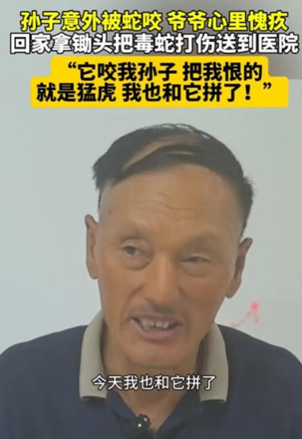 有仇必报!黑龙江,孙子意外被毒蛇咬,爷爷感到很愧疚,竟然立马回家,拿锄头把毒蛇打伤,送到医院提供帮助。 那条蛇不是第一次出现。其实两天前院子就有人看见过,说是一条灰黑色的长蛇,从柴垛钻出来又迅速滑进了玉米地,谁也没当回事。后来孩子在院子玩,一声惨叫,把正在收拾农具的爷爷惊得手里的东西都掉地上了。他跑过去一看,孩子手掌肿成了半个拳头,鲜血从牙印边渗出来,伤口周围颜色已经发黑。那一下他整个人懵了,嘴唇发白,眼神直直的,半分钟没说出话。 紧接着就转身跑了。谁也没想到他是去拿锄头。平时这位爷爷是个怕蛇出了名的人,院子要是有蛇皮,他都能吓得翻院墙出去,可那天他回来的样子像变了一个人。也没说话,直奔鸡窝后那堆柴火旁边,一眼就看见那蛇还在角落打卷。 第一下下去的时候,蛇猛地跳起来,锄头差点被甩出去。他也没退,咬着牙接着砸,每一下都重,地上的土被震得飞起来。那时候有邻居想拉他一把,说“蛇都快死了”,他没理,只回了一句:“它咬我孙子,我今天不弄死它,我不姓刘。” 等蛇完全不动了,他拿个蛇皮袋,把蛇装进去,扣得紧紧的,又把锄头搭在电动三轮的把手上,一口气骑到了医院。医生刚开始也愣了,后来明白过来,赶紧把蛇拿去化验,说这能直接判断用哪种血清。后来确定是北疆蝮,一种东北山林里才有的毒蛇,城里人根本不认识,没这个样本,最多靠经验下药,结果可能就不是现在这个样了。 后来爷爷在急诊门口蹲了很久,一直低着头不说话,手上还沾着土和血。直到医生说孩子稳定了,他才抬起头,眼角都是泪。他说:“我不是想打蛇,我是怕我孙子撑不过去。” 有护士说,那时候谁劝都没用,他浑身是劲,像换了个人。拍的视频传上网以后,有人说他狠,其实那哪是狠,那是吓坏了,是认死理地要把孩子从鬼门关上拽回来。那种感觉,就像你眼看一个人掉水里了,你不会游泳也得跳——你根本没时间想自己会不会死。 现在孩子恢复得不错,爷爷还在病房门口守着,不敢进屋,怕吓着孩子。他嘴里还说着要找人看看那条蛇是不是附近常出现的,要不是这次,谁知道以后还会出啥事。他是真怕了,但也真上了劲。 你说这事你要是碰上了,会像他一样冲上去吗?还是先跑一边冷静?你可以讲讲看你身边有没有这样的事,挺想听听的。 信息来源:2025年7月17日黑龙江卫视午间新闻、《黑龙江毒蛇分布现状与应急指南》(黑龙江中医药大学出版社)。