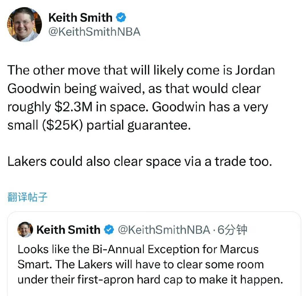 湖人为了签约斯玛特,裁掉米尔顿!!! 斯玛特被买断后,湖人动作非常迅速,他们在买断市场的嗅觉可以说是相当的高。 根据记者Shams最新消息透露:湖人为了签约斯玛特必须腾出一个球员名额,他们最终选择裁掉米尔顿,毕竟米尔顿恰好本周末合同马上转为全额保障了,这个买断太及时了,米尔顿就比较惨了,他成了牺牲品,300万就这么没了。 当然,如果能够让斯玛特保持健康的状态,那么这次买断签约就是赚大了,斯玛特毕竟是防守能力超强的球员,换了米尔顿肯定是不亏的。 湖人这次又抓住了自由市场,这貌似成了他们的传统……首发中锋从买断市场捞到了,有首发实力的后卫如今也捡到了,这运气也是可以啊,要不然佩林卡休赛期得被骂死了。#湖人队球员调整# #湖人捡漏# #湖人阵容名单# #湖人队内变动# #湖人薪资# #艾顿# #斯玛特#