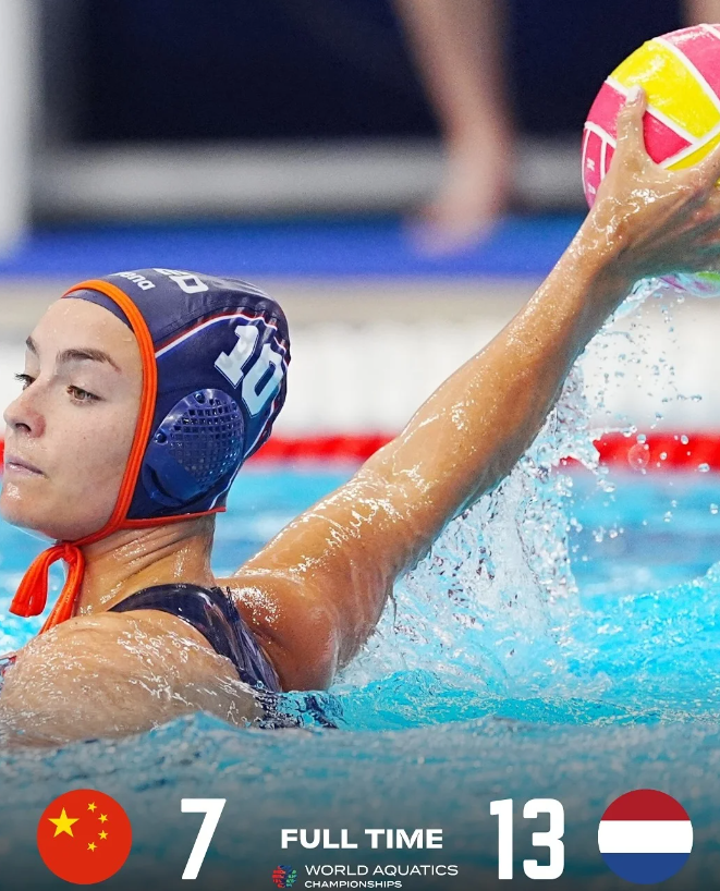 ✅最后一轮小组赛,🇨🇳中国队对阵本年度水球世界杯季军、世界排名第2的🇳🇱荷兰队,两队在此前的比赛中均取得一胜一负。中国队开局打得十分积极,首节比赛双方你来我往,交替得分,严思雅和邵轶歆连续帮助球队扳平比分。在防守端,门将沈轶能也多次做出精彩扑救,半场结束中国队3:5落后。下半场,由于在攻守两端的激烈对抗,中国队的体能受到极大考验,在第三节的前6分钟始终未能攻破对方球门,荷兰队则在队长萨布丽娜的带领下连续得分,将领先优势扩大并一直保持至终场。