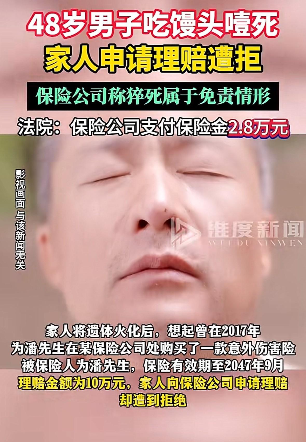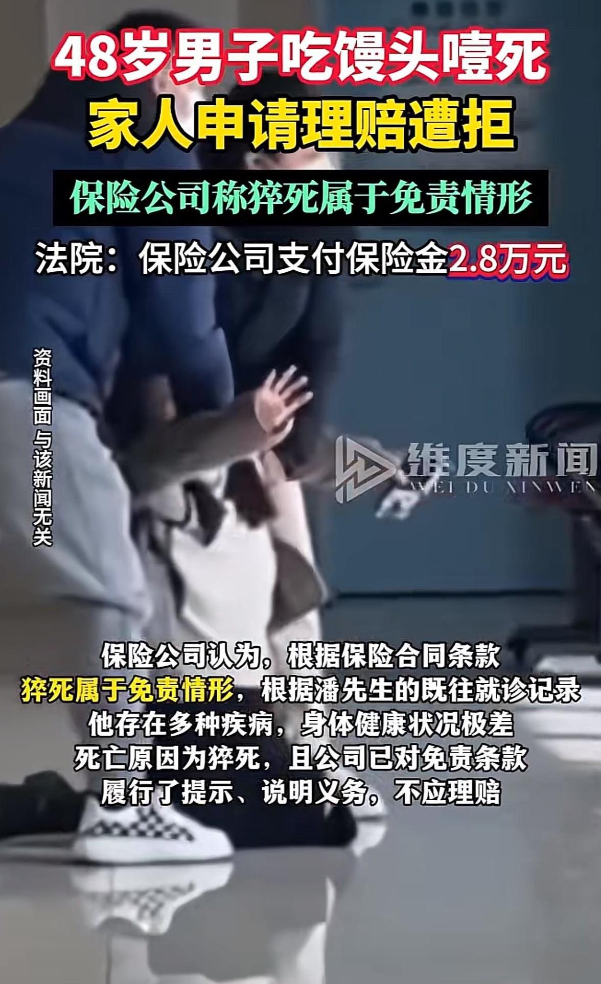 上海,男子吃着馒头突然倒地,等救护车赶到后男子已经失去生命体征,嘴里还有馒头,死因是猝死。家人将男子火化后突然想起,曾给男子投保意外险,能理赔10万,就去找保险公司理赔。保险公司赔偿2万多元后就不再赔偿,家人找保险公司理论却被告知猝死是免责的,家人一怒之下把保险公司告上法庭,法院判决后保险公司傻眼了。 据红星新闻7月20日报道,男子意外身亡后,家属想起来曾投保过意外伤害险,但在理赔时却困难重重。 2023年11月,潘先生跟其母亲在家中吃饭,突然间潘先生倒在地上,母亲被惊吓到,呼喊潘先生没有反应,于是就求助邻居帮忙拨打120。 母亲回想潘先生倒地前都做了些什么,但她只记得潘先生好好的在吃饭,大口的吃着馒头,吃得还挺香的,然后就突然栽倒了地上。 母亲大声呼喊潘先生的名字,但是潘先生始终毫无反应,推了几下潘先生也是没有回应,于是才去找邻居帮忙拨打电话。 等救护车赶到的时候,潘先生已经没有了生命体征,嘴里还有没吃完的馒头。医护人员检查潘先生的死因时,发现潘先生的咽喉部还有没有咽下去的馒头。 潘先生的死亡证明上标注的死因是猝死,家人很快就将潘先生火化,并处理好潘先生的后事。 在整理潘先生的遗物时,意外发现2017年曾经给潘先生买过意外伤害险,有效期到2047年9月,还在保险期内,能赔偿10万元。 潘先生家人拿着保单去找保险公司理赔,按照保险公司的要求提供了材料,保险公司很快就给赔偿了2万多元,然后就再也没有继续赔偿。 潘先生家人不明白为什么,就去找保险公司理论。保险公司声称潘先生的死因注明是猝死,是在免责情形内的。 保险公司最开始是根据家人提供的证明材料下,在原因不明的情况下赔偿了2万多元,但经过对材料的梳理,发现潘先生的死因并非理赔范围内的猝死。 若是潘先生的家人能够提供出补强证明,证明潘先生的死因在理赔范围内,那么就可以继续理赔,若是提供不了,那就只能拒绝剩余款项的理赔。 潘先生的家人也听明白了,因潘先生已经进行了火化,给保险公司提供的材料仅仅是医院的急救病史和居民死亡证明书,无第三方鉴定可以佐证,才给了保险公司由头拒绝理赔。 但是潘先生已经火化,没办法做司法鉴定,难道死亡证明书上的死亡原因都不是证据证明潘先生的死亡是猝死吗? 潘先生家人很生气,猝死就已经是死因,怎么可能不在理赔范围内,认为保险公司就是找借口拒绝理赔,于是一气之下将保险公司告上法庭,要求保险公司理赔剩余款项。 潘先生家人认为,既然保险公司能够理赔2万多元,就任何了家属提供的材料,认定潘先生的死因是在理赔范围内的,就应该继续进行理赔。 根据《保险法》第22条的规定:保险事故发生后,按照保险合同请求保险人赔偿或者给付保险金时,投保人、被保险人或者受益人应当向保险人提供其所能提供的与确认保险事故的性质、原因、损失程度等有关的证明和资料。 保险人按照合同的约定,认为有关的证明和资料不完整的,应当及时一次性通知投保人、被保险人或者受益人补充提供。 潘先生的家人按照保险公司的要求提供的理赔的相关材料,而且保险公司也已经受理了理赔案件,并且理赔了2万多元的赔偿款。 但是保险公司却在理赔了2万多元后拒绝理赔剩余款项,还要求潘先生的家人继续提供证明材料,要求证明出潘先生的确是因为意外猝死的。 潘先生的遗体已经火化,无法提供出其他材料证明潘先生猝死的具体原因。潘先生的家属认为保险公司就是找理由找借口拒绝理赔,希望法院能帮助主持正义。 保险公司认为,潘先生的死亡证明书上虽然标注是猝死,但根据潘先生以往的就诊记录来看,潘先生本身就存在各种疾病,身体状况很差,不符合猝死的理赔范围。 保险公司提供出合同条款,对于猝死的详细解释是:表里健康的人因潜在疾病、机能障碍或其他原因在出现症状后的24小时内发生的非暴力性死亡。 因潘先生的疾病很多,所以仅凭家属提供的证明材料无法证实潘先生并非是因疾病导致的猝死,所以保险公司在通融赔付2万多元后,才拒绝继续理赔。 法院审理后认为,因潘先生家属将遗体火化,无法进一步鉴定潘先生的猝死是由于病原性的猝死还是意外猝死。 但是可以通过案发时在场的家属陈述可以推断出,潘先生的因吃馒头噎住喉咙导致是窒息。 根据《民事诉讼法》第67条的规定:当事人对自己提出的主张,有责任提供证据。 若是保险公司执意认为潘先生的死因可能是病原性猝死,应当承担举证责任。 最终在法院的调解下达成协议,保险公司再向潘先生的家人支付2.8万元保险金,也就是对保险金额理赔一半。