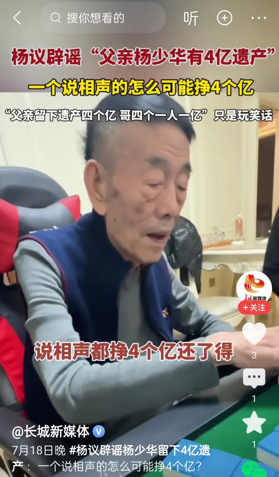 杨议辟谣了,他爹4个亿资产是假的,说相声有4个亿的是郭德纲,天津出相声人才,可是