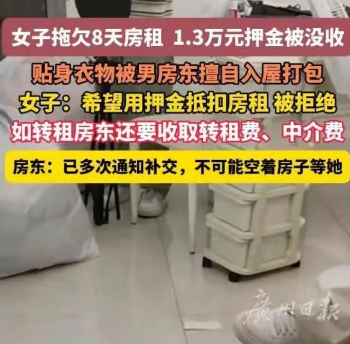 广东广州,因女租客拖欠8天房租,男房东多次催要未果,扣了女租客13600元押金,还将女租客的行李打包扔在门口。因为内衣、内裤等私人物品也被男房东打包,女租客感觉“生理不适”反欲追究男房东的责任。 美女网红陈女士在社交平台上发布控诉视频,“我一个女生出门在外租房,本来就不容易,如今连起码的尊重都没有,这种行为简直像是侵犯。” 短短几小时内,视频迅速冲上热搜,“女租客被房东强行清房”的词条引发了全民热议。 不少网友义愤填膺,留言区涌现出大量声讨房东的评论,有人甚至上升到了性别议题:“男人怎能如此粗暴对待一个孤身在外的女性?”“女性的隐私权去哪了?” 但这场舆论风暴却在短短两天后急转直下。 故事还得从几个月前说起。今年2月,陈女士在通过中介平台看中这套位于广州核心地段的小区房。这是一套精装修的一居室,房价高达13万元/平米,而月租为6800元。 对普通打工人来说,确实不便宜,但对于在网上拥有数十万粉丝的陈女士而言,这是“展示生活方式”的重要背景。 签合同当天,陈女士与房东在中介见证下,按照“押二付一”的常规模式支付了13600元押金,并缴纳了首月房租。 合同内容写得清清楚楚:每月23日为租金缴纳日,逾期3天未交即视为违约,房东有权依法收房。 入住后,陈女士的确住得很“开心”。她将出租屋布置成自己的“直播间”,每日分享穿搭、美妆、健身日常,粉丝也逐渐增长。然而,外表风光的背后,却开始埋下纠纷的种子。 据小区邻居反映,陈女士平时进出频繁,不少陌生男女在深夜出入;部分邻居曾因噪音问题向物业投诉。 与此同时,有人注意到她不止一次在视频中表达对“房东条款苛刻”的不满:“明明交了押金,房子不是也算半个自己的了吗?”这种“模糊租权”的观念,也许正是后续争议的开端。 转折发生在6月。陈女士突然接到出差通知,要前往广西工作,并计划长期留在外地。由于合同未满,她不打算继续租住,遂主动联系房东协商转租。 房东回复说:“转租可以,但必须走正规程序,需要支付相关中介费与清洁费。此外,押金将视合同履行情况退还一个月,其余作为违约金。” 陈女士觉得这份“协商”并不公平。她在视频中曾提到:“我本想好好沟通,但房东一开口就是钱,我都还没开始谈,他就摆出一副拒人千里的样子。” 恰好6月23日是租金到期日。当天,陈女士并未转账。 第二天房东催问,她却表示“还没想好该怎么处理这套房子”,希望“能宽限半个月”,或者“先用押金抵一下房租,等我决定了再说”。 房东坚决表示不同意:“合同里写得清清楚楚,押金不是用来抵房租的。” 27日,陈女士仍未交租,房东发出最后通牒:“若你再不回应,我只能依法清房。”陈女士以为这只是“吓唬话”,便没有进一步回应。 没想到第二天上午,她收到几张照片——她的衣物、化妆品、文件袋已经被打包,贴身衣物赫然在塑料袋中,还有几包被放在门外的照片。 这一刻,陈女士彻底爆发了。 她将这一切拍成视频,并配文:“我只不过晚交了几天房租,房东就这样对我?把我的内衣、病历单扔出去,是不是太侮辱人了?” 视频发出后,流量直线上升,短短几个小时就被数百万网友围观。 但也就在此时,网络“反侦探”们开始行动。一些网友通过她曾发布的旧视频发现,陈女士过去也曾发布过“租房踩雷”“房东刁难”相关内容,并在评论中多次表示“现实比剧情更狗血”。 这些内容让人怀疑,她是否有策划借“受害人”身份搏流量的动机。 更让人惊讶的是,有一位自称中介工作人员的网友爆料:“当初签约时,合同已详细注明不可转租,逾期不交租视为违约。 房东清房之前还给她发了三条短信和两次电话通知。”同时,他还附上截图显示清房当天中介人员也在场,并全程录像。 随着警方介入调查,事态进一步明朗。据警方通报,房东方面的操作虽略显强硬,但在法律框架内并无明显违规。 而陈女士的视频虽属个人表达,但若确有失实成分,或将构成对他人名誉权的侵犯。 舆论一夜反转。原本同情陈女士的评论区开始出现大量理性甚至批评声音:“合同不是儿戏,你有义务按时交租。”
