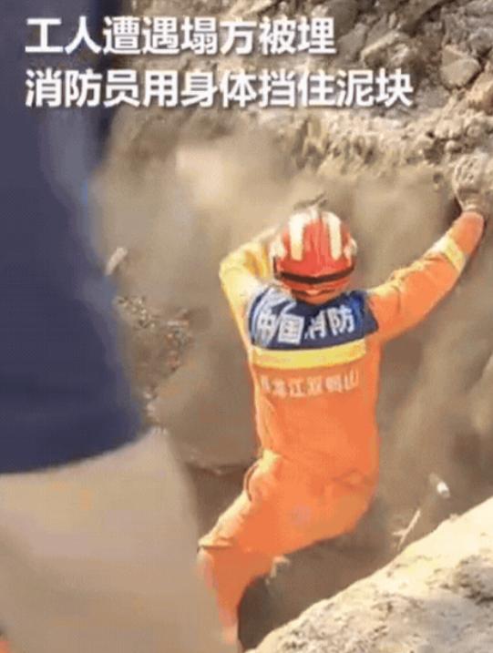 “火到人民日报了!”黑龙江,工人遭遇塌方被埋,不料,消防员在营救时,竟遭遇二次坍