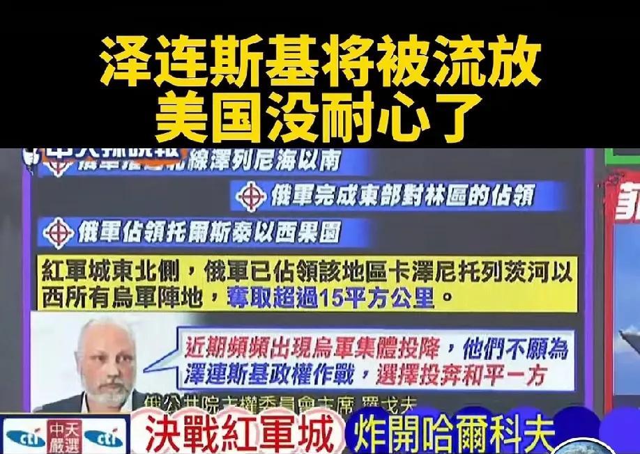 泽连斯基有可能被流放。 网曝:白宫人员透露,如果特朗普下定决心,泽连斯基将被流放,如果泽连司机拒绝离开白宫将用武力将其机是押走。 这个方案美国可能已拟定好了,只等特朗普点头。 白宫对外透露的信息的动机是:向泽连斯基施加压力,不要打选举的主意,去参加竞选。所谓流放也是美国对他一种人道主义的保护。找个偏僻的地方让他活下来。不准再参与乌克兰国内的政治。 特朗普看透了,有泽连斯基在,俄乌战争停不来。 流放是美国对他的恩赐,特朗普明白,泽连斯基使俄乌双方因他死的人太多了,若泽连斯基落在俄乌双方的手里,死定了。