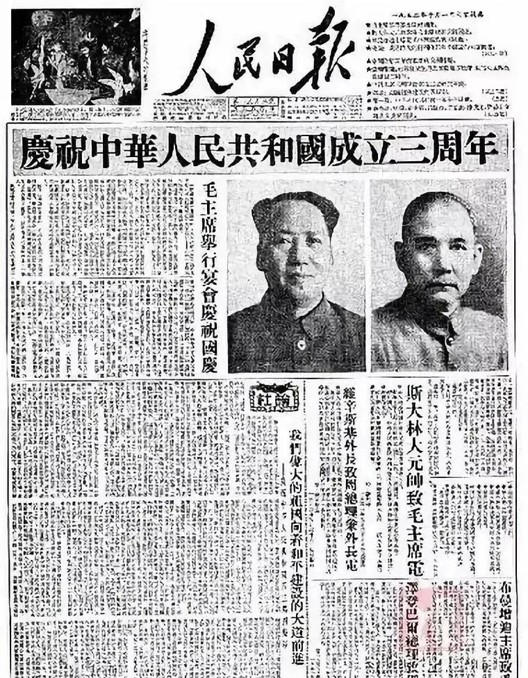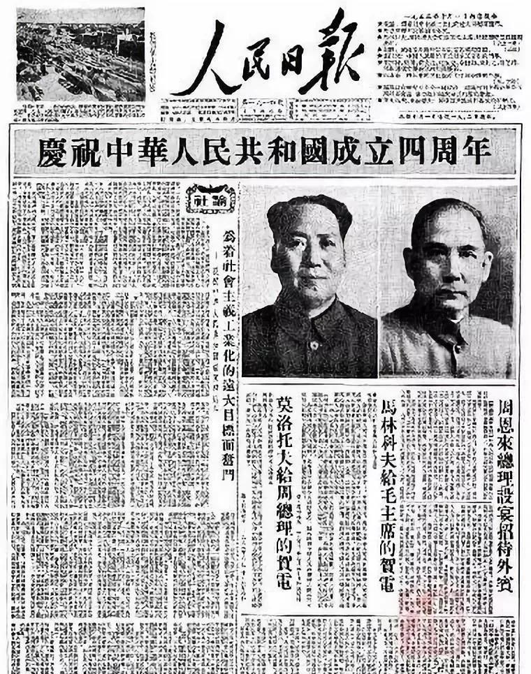 1950-1953年10月1日《人民日报》头版版面,你见过吗? 仔细看一看,发现有两个最突出的相同内容: 第二个就是,苏联斯大林元帅连续三年致电毛主席,祝贺中国国庆。 1953年上半年斯大林逝世,10月的贺电就改为马林科夫和莫洛托夫两人了。分别致电毛主席和周恩来总理。 回顾历史,了解过去,利于未来。